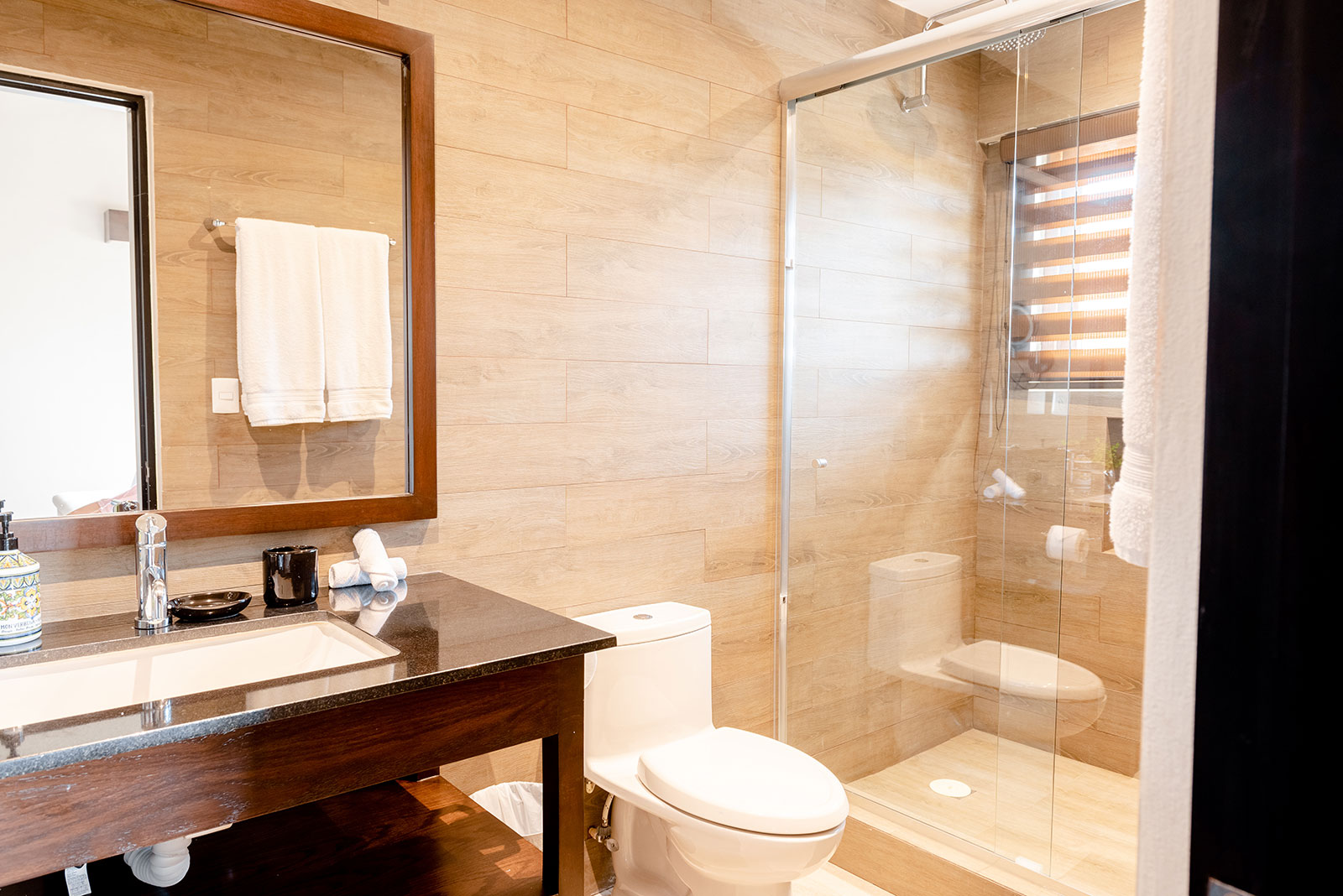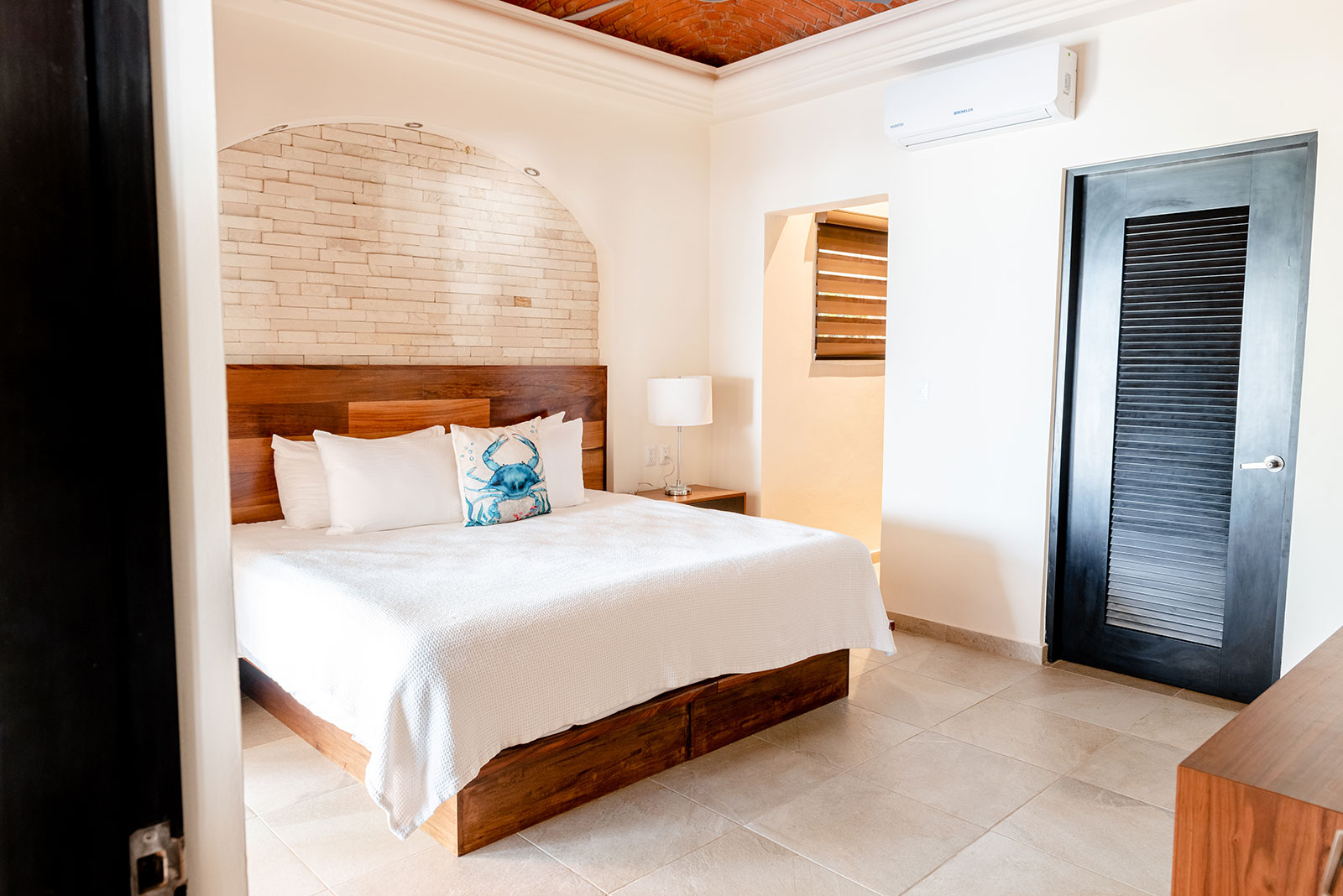King size bed, Access to shared terrace, Air conditioning, Ceiling fan, Ensuite bathroom with shower, Hairdryer, Ocean view, Safety box, Toiletries, TV, Wifi access, Window screen
