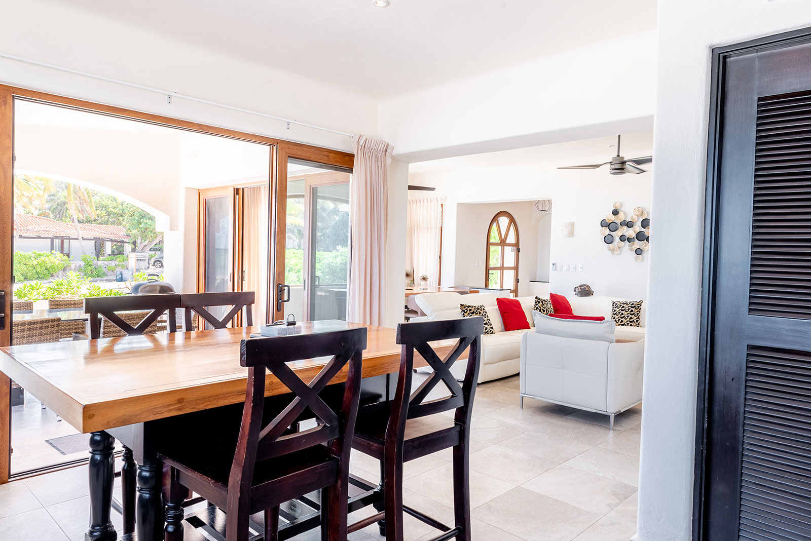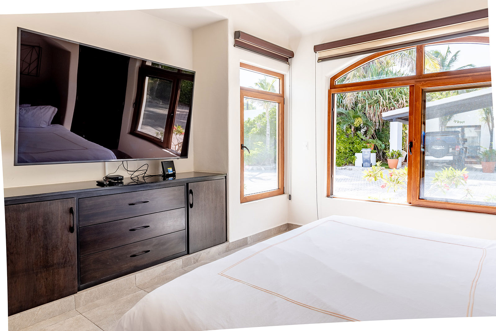 Boasting three generous bedrooms with king-size beds and private TVs, the Villa ensures every guest enjoys a peaceful and relaxing stay. Two contemporary bathrooms add a luxurious touch, combining style and convenience for your seaside retreat.