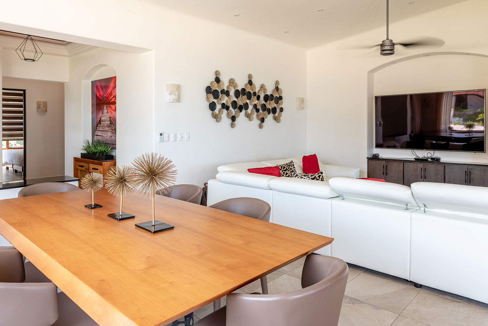Boasting three generous bedrooms with king-size beds and private TVs, the Villa ensures every guest enjoys a peaceful and relaxing stay. Two contemporary bathrooms add a luxurious touch, combining style and convenience for your seaside retreat.